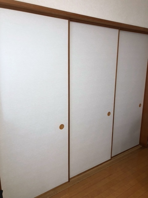 HPご覧頂き今回もネット経由での客様でした。ちょっと忙しかったもので見積りに伺うのが遅れて申し訳ありません。襖の張替のご依頼です。最近の住宅に多い段襖(段ボール製の襖)。あらかじめメリットデメリットをお話したのち作業にかからせていただきました。運よく引手が割れることなく外れたのでお安く出来たのではないでしょうか?手作業なので万一の場合ありますので幅のある見積もりにになりましたが、幸い最安値での施工ができました。また作業中の駐車スペースにもご配慮いただきありがとうございました。スムースな作業ができました。管理人さんにも親切な対応いただき誠にありがとうございました。