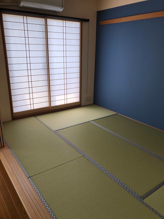 お部屋の一面にブルーのアクセントクロスがあり畳の縁もブルー系をお選びいただきました。