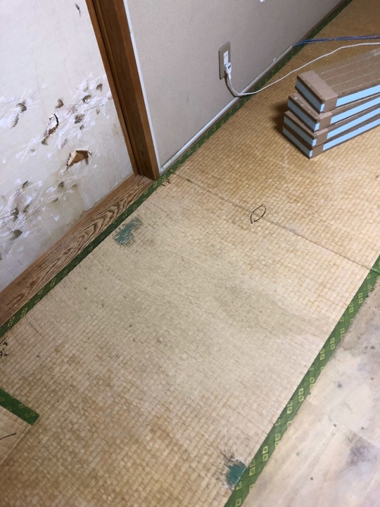 わんちゃんに2階の畳と襖に穴をあけられたお困りのお客様。お忙しいようで夕方6時以降に畳と襖をひきあげた翌日、6時以降の納品でとのご依頼でした。
