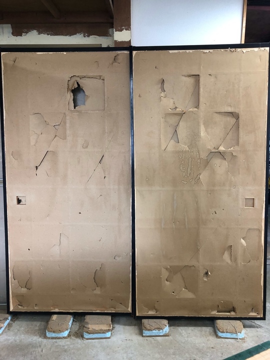襖も表面の紙がすっかりなくなり、下地も酷い状態でしたが、綺麗に補修し、全く新品同様の仕上がりなりました。
