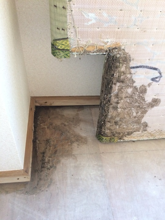 なんか気になる隙間を発見。畳をめくってみると白アリに食べられていました。