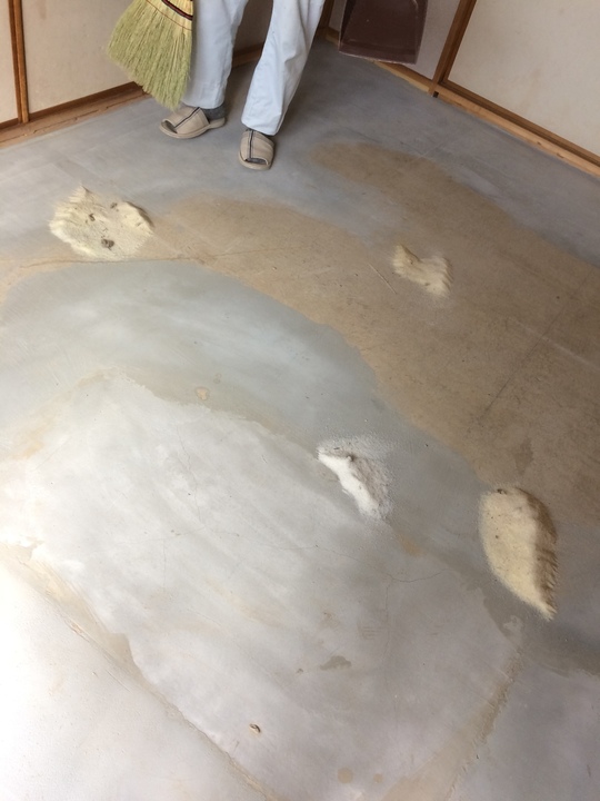 古畳の下にはご覧の通りすごい量の乾燥剤がまいてありました。新築時はコンクリートの湿気を取る為のなのでしょうが、こんなにまくものなんでしょうか?すべて回収しました。