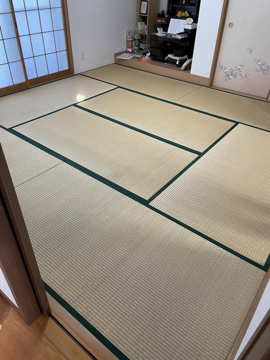 今回、40年物の畳の入替と襖の新調、張替のご依頼です。まずは畳の入替です。表はひのさくら。良い表が手に入ったのでとても綺麗です。