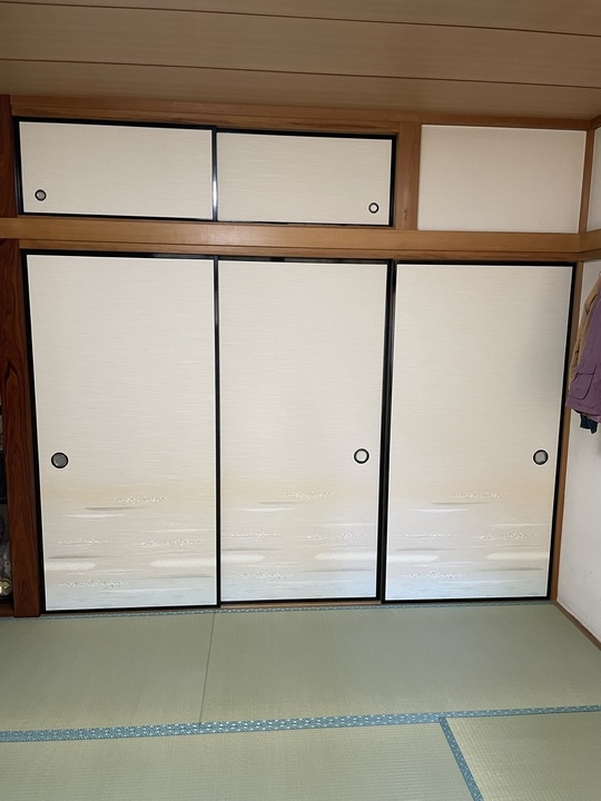同時に襖の張替えのご依頼を頂きました。時間があったので、襖と畳の納品、同時にお天気の良いない中おさめることが出来ました。