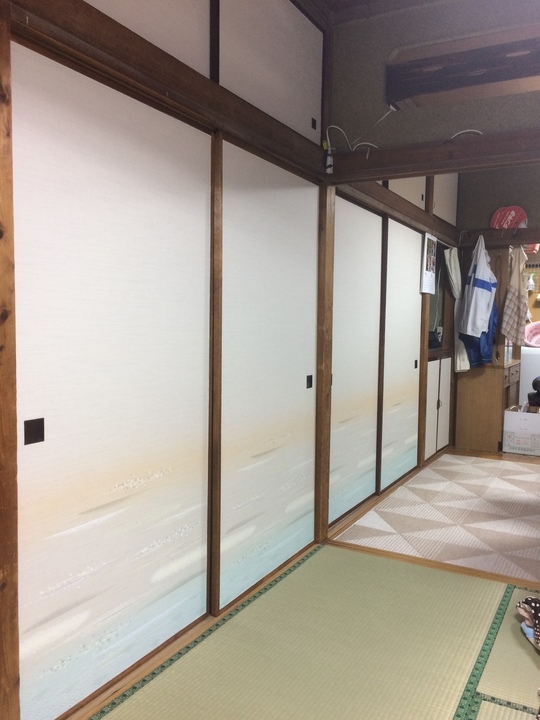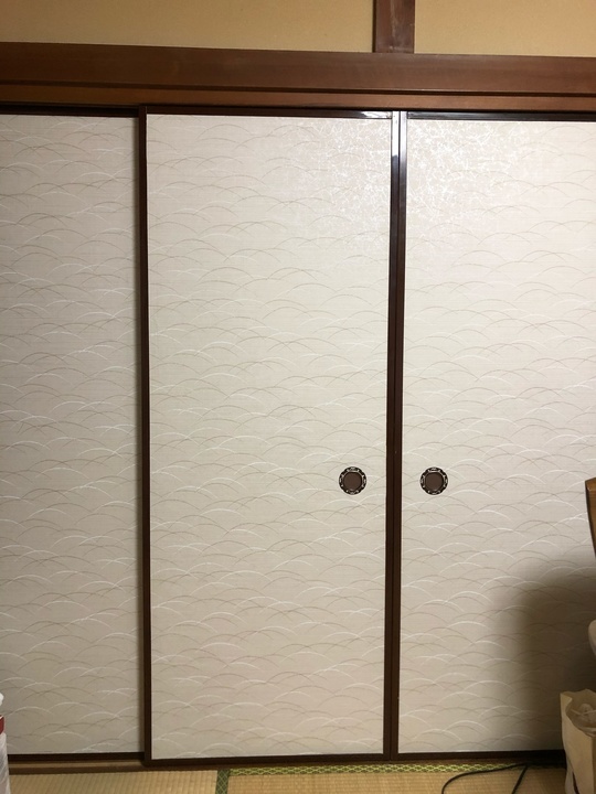 かなり襖が汚れてしまっていましたが、総模様のシンプルな柄に張替させて頂きました。