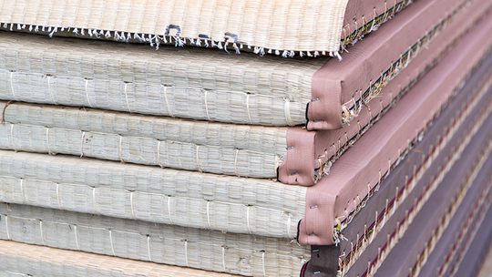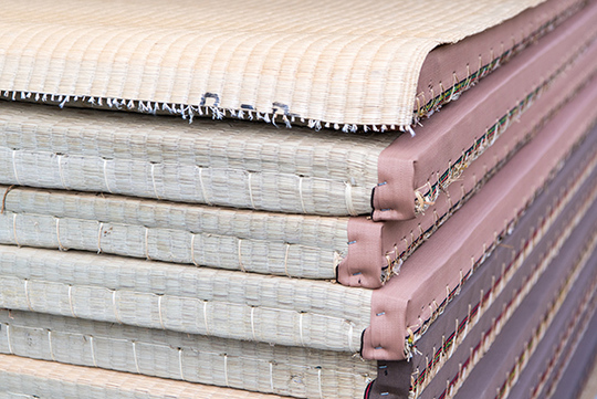 ヘリ無し畳は、普通の畳と違い手間がかかります。より正確な寸法で仕上げなければならないため、細心の注意を払いながら、製作にあたります。