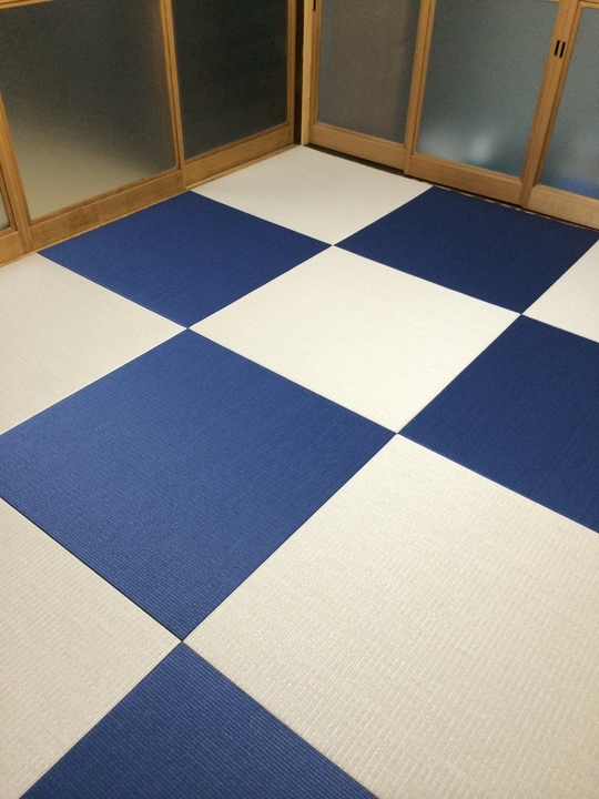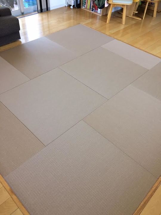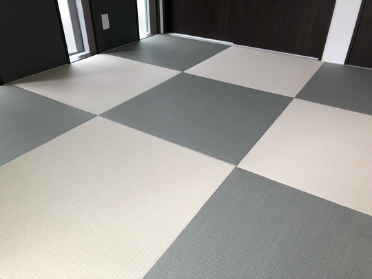 今多くの場合ヘリ無し畳は正方形の半畳を互い違いに敷くのが主流です。