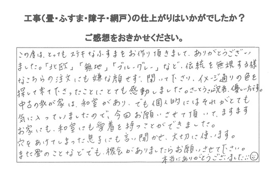 おそらくお客様にとって決してご損にはならないであろう和紙表を自信をもってお勧めさせていただきました。