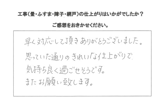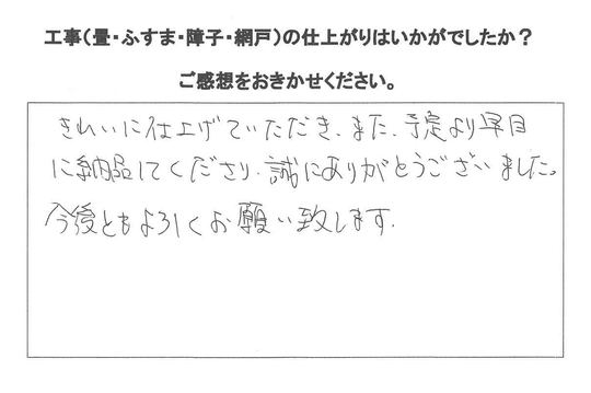 天気が良く運よく一日で畳、障子とも納品できました。