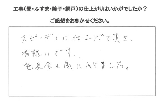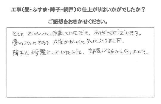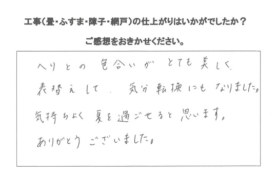 襖と障子の張替のご依頼から皮むけした畳の表替までご依頼いただきました。