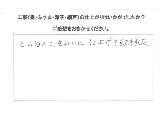 店長脊柱管狭窄症のため、畳も一間ずつ二日で作業させて頂きましたが丁寧に作業させて頂きました。